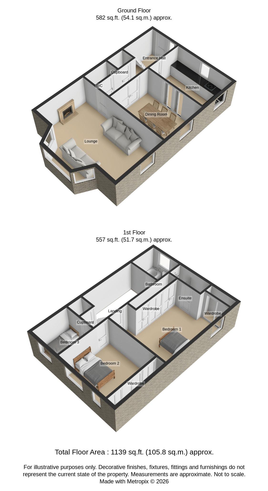 To the first floor, the property offers three bedrooms, including a superb principal bedroom benefiting from a stylish en-suite. The remaining bedrooms are served by a well-appointed family bathroom.